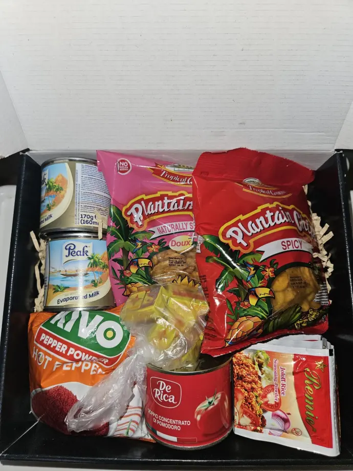 - 6–8 iconic snacks (chin-chin, plantain chips, puff-puff mix, Asian chips, Caribbean sweets)